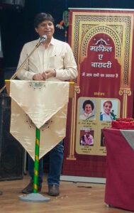 बारादरी की संस्थापिका और सुप्रसिद्ध शायरा डॉ. माला कपूर ‘गौहर’ ने प्रकृति और पर्यावरण के प्रति अपने भावों को इन पंक्तियों ‘मेघों से झरता पानी, पर्वत पर जमता पानी, सूरज की गर्मी पाकर, पिघला बर्फ़ीला पानी, पानी की सुनो कहानी, ख़ुद अपनी राह बनाता, झरनों का निर्झर पानी, नदियों में मीठा बहता, खेतों को सींचे पानी, पानी की सुनो कहानी…’ में प्रस्तुत किया। इसके अलावा उनके शेर ‘हमने मुश्किलों के वक्त में अक्सर, नाम जितने पुकारे तेरे हैं। इस दफा फिर से रुसवा होना है, इस दफा भी इशारे तेरे हैं’ भी पसंद किए गए। अति विशिष्ट अतिथि जय प्रकाश ‘जय’ ने अपने शेर ‘बहुत हंसे तो कहीं जा के एक बूंद गिरी, हमारी आंख पे रक्खा था भार पानी का। फ़िराक़ काट रहा हूं मैं ठीक वैसे ही, किसान जैसे करें इंतिज़ार पानी का’ पर दाद बटोरी।