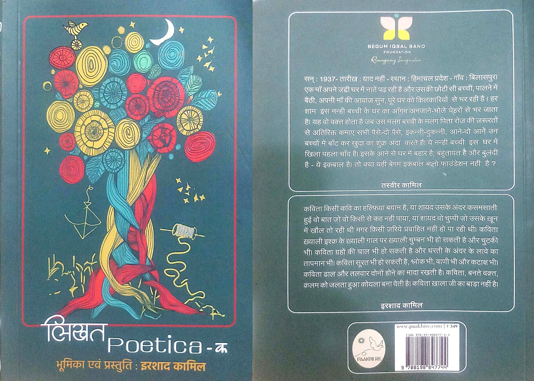 “लिखत पोएटिका – क” (प्रकाशक - पाखी रे क्रियेटिव्स, जयपुर) नाम से आई इस पुस्तक में 95 रचनाकारों की एक-एक रचना शामिल है। इनमें चर्चित नाम भी हैं और नवोदित भी। संग्रह के शुरू में इरशाद कामिल और तस्वीर कामिल के संबोधन (“कविता के नाम” और “आपको इकबाल मुबारक”) भी हैं। “कविता के नाम” और “आपको इकबाल मुबारक” के लिए इतना ही कहा जा सकता है कि अगर आप किसी बेमिसाल उपन्यास या कहानी को पढ़ने के बाद ल