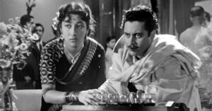 दूसरा संवाद है- ‘यह दीवानों सी हालत क्यों बना रखी है… ? नबाव (रहमान) को असलम (गुरुदत्त) जवाब देते हैं-“सब किस्मत का खेल है।”… “साहिब बीवी और गुलाम” के अक्स में भी ‘प्यासा’ और ‘कागज के फूल’ के गुरुदत्त इस किस्मत के खेल को एक नयी ऊंचाई प्रदान करते हैं और अपनी जिंदगी से जुड़ी अपनी चंद फिल्मों के प्रतिबिंबित अक्स के साथ हमारे भीतर दाखिल हो जाते हैं। लेकिन इससे जुदा अक्स ‘प्यासा’ की 1957 की प्रीमियर-पार्टी में वरिष्ठ फिल्म समीक्षक संपत लाल पुरोहित जी को साफ दिखाई पड़ता है। उस अवांतर-प्रसंग को भी यहां प्रस्तुत करने का मन है। इसे उनके ‘जनसत्ता’ के 12.5.2005 को शाया हुए चर्चित कॅालम से साभार दे रहा हूँ । इस मौके पर वहां की ‘प्रेस’ को भी निमंत्रित किया गया था । दिल्ली के फिल्म-वितरक की ओर से चेम्सफोर्ड क्लब में हुए उस शानदार आयोजन का आँखों देखा हाल-सा वर्णन पुरोहित जी ने क्या खूब किया है अपने कॅालम—“मेरी नजर से” की रहगुजर में! .. .. .. .. ..